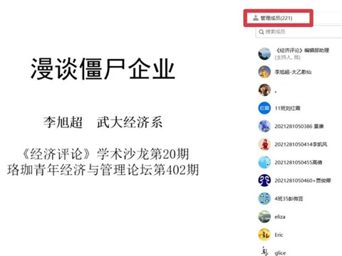 在提问环节,与会师生就数字化转型与僵尸企业的研究思路、区域内僵尸企业的影响等问题与李老师展开交流,现场气氛十分高涨。这次青年论坛吸引了200多人线上参加。