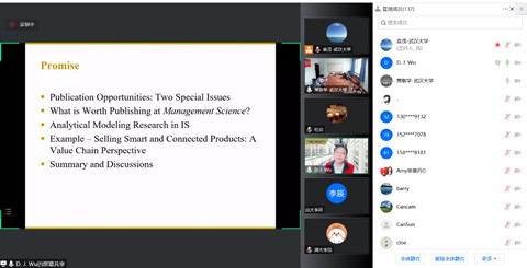 本次讲座围绕如何在顶级期刊Management Science发表高水平论文展开,吴教授从论文征稿、发表标准、信息管理领域的理论模型研究以及一个具体的写作案例进行了详细介绍。