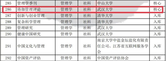 2023年3月,中国社会科学评价研究院发布中国人文社会科学学术集刊AMI综合评价报告(2022年),《珞珈管理评论》成功入选“中国人文社会科学期刊AMI综合评价核心集刊”,成为管理学门类两本核心集刊之一。这是继2017年入选CSSCI收录集刊后,《珞珈管理评论》获得的新的荣誉。