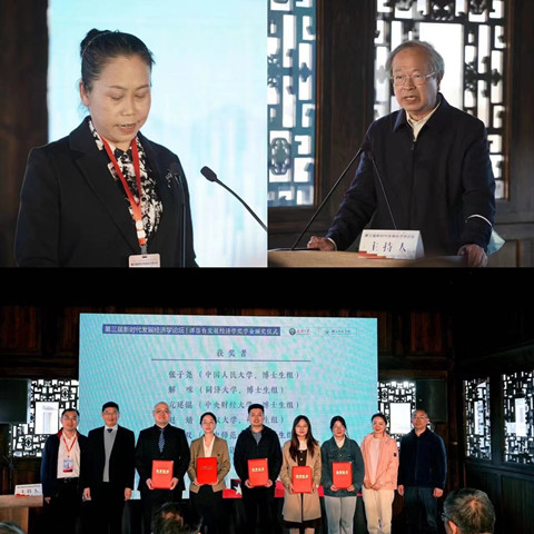 西迁历史文化保护中心杜理才主任一同为此次获奖者颁发奖项。张建华教授做了题为《从全面小康到共同富裕:中国式现代化理论创新的新使命》的主题报告。