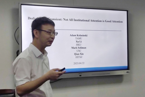 A321教室举办。本次论坛由学院金融系主办,沈思晨老师主持了此次论坛,来自香港科技大学的熊琰老师、厦门大学的姚文韬老师、南方科技大学的杨世杰老师、哈尔滨工业大学(深圳)的辛乾老师、首都经济贸易大学的郑伟男老师、香港中文大学(深圳)的林雨菲老师、上海科技大学的周彤老师和AV淘宝