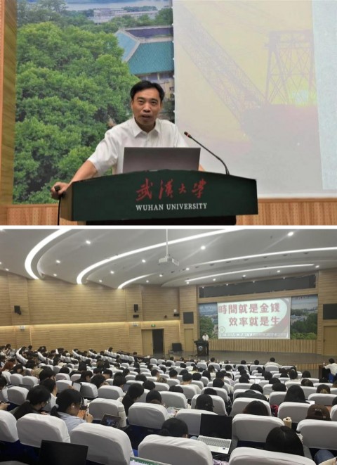 早期建筑的建造历程引入,用数据阐明了建筑业在国民经济中的重要地位,讲述了中国一冶作为建设主力军,在国家建设发展、人才培养上的故事。但军以武大学长身份,与大家探讨如何“从优秀的学霸转为卓越的企业家”。他指出,要站在高起点高平台上,高标准要求自己,“不仅要有‘才’——把知识转化为价值,还要有‘情’——把资源整合成价值”,才情兼具,方能成功,他鼓励同学们提高自身的学习意识、感恩意识、团队意识,走好大学路、奔向求职路,成为学有所成、报效国家的“珞珈少年”。