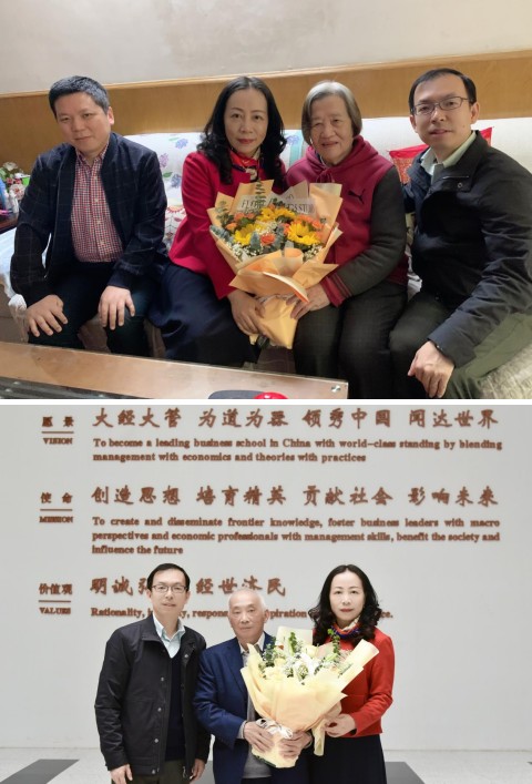 姜星莉、聂军先后来到甘碧群教授、周茂荣教授家中,代表学院感谢老领导为学院发展建设作出的贡献和对学院各项工作的支持,并就如何推进学院高质量内涵式发展、推动学院学科建设、人才培养各项工作、以及130周年院庆工作,进行了深入交流,认真倾听意见和建议。