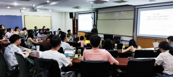 5月30日下午,黄炽森教授为在座师生讲述测量的基本概念及理论,重点介绍了古典测量理论、共同因子、信度与效度的概念及测量方法等。同时,黄教授以自己有关情绪智力(emotionalintelligence)的论文为例展示建立测量尺度的步骤及操作实例。