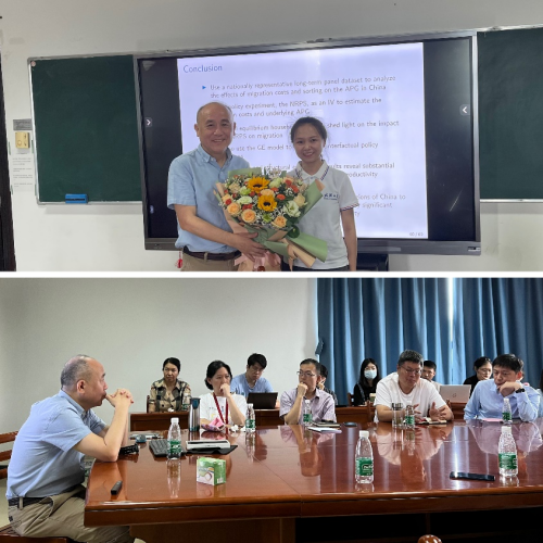 院长聂军教授出席讲座。论坛由世界经济系举办,张天顶教授主持。李雪松、胡艺、刘熙莹、亢梅玲、王书飞、罗璇、陈仁静等教师以及20余名硕博研究生参与了本次学术论坛。