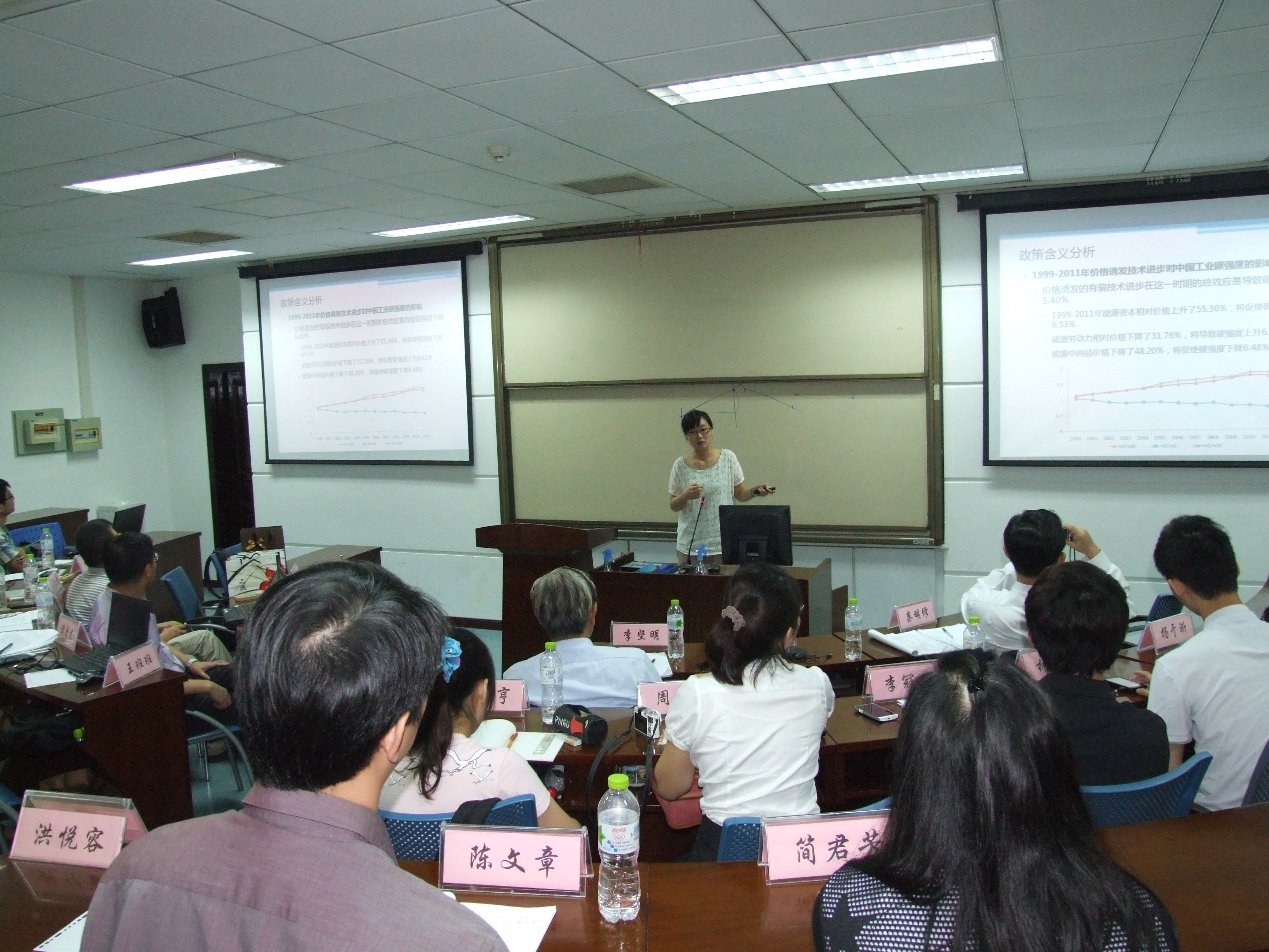 博士生王班班和刘蒂分别以“有偏技术进步对碳减排强度的影响”和“不同来源地的FDI对我国碳排放影响的实证研究”进行了演讲;台北大学博士生罗艾凡和硕士生周轩轩则分别就“动态经济增长:拉美和东亚的EKC曲线对比分析”,以及“台湾绿色成长指标建置之研究-以修正型层级分析法为例”为主题展开演讲。