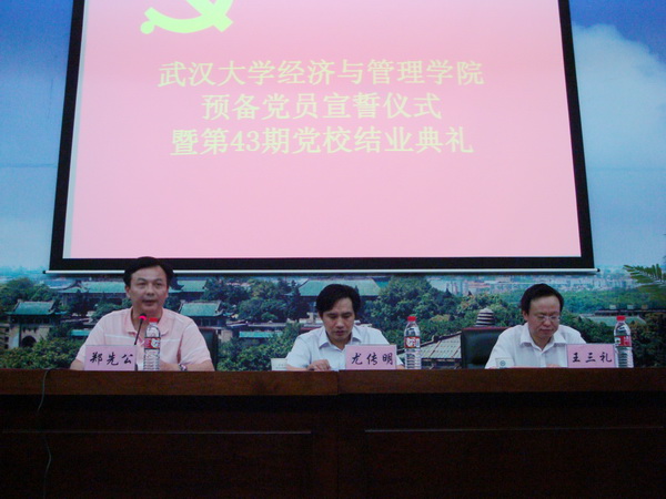 党委书记、分党校校长尤传明,院党委副书记郑先公,以及院党政办公室和学生办公室的老师出席了本次典礼。此外,2009年上半年发展的预备党员和第43期入党积极分子也参加了典礼。典礼由郑书记主持。