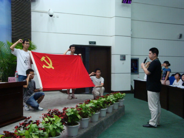 06级本科生冯舒洋代表党员发言,她通过回顾自己的入党历程表明了对党的赤诚,并表示所有的党员都应用科学发展观武装自己,充分发挥党员的模范带头作用,随时准备为党奉献一切。