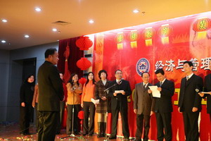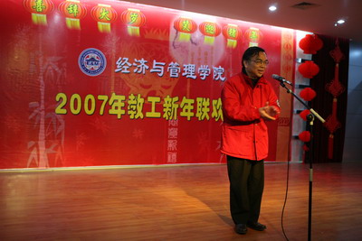 校党委书记顾海良首先发言,他对AV淘宝 一年以来在教学、科研、人才培养、学院发展上所取得了成绩予以了高度评价,并向AV淘宝 全体教职工表达了新年的问候。院长陈继勇总结了学院2006年取得的十大成绩并展望了07年的发展蓝图,并祝老师们新年愉快、万事如意!