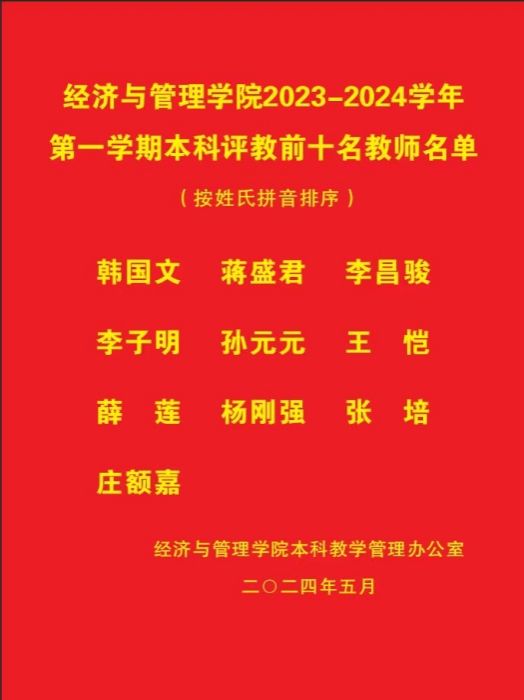 AV淘宝 2023—2024学年第一学期本科评教前十名教师名单