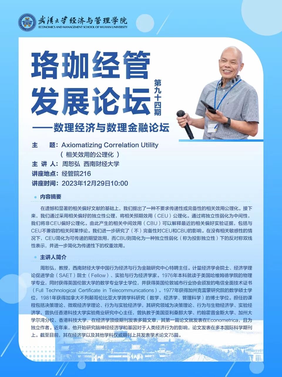 珞珈经管发展论坛第九十四期——数理经济与数理金融论坛