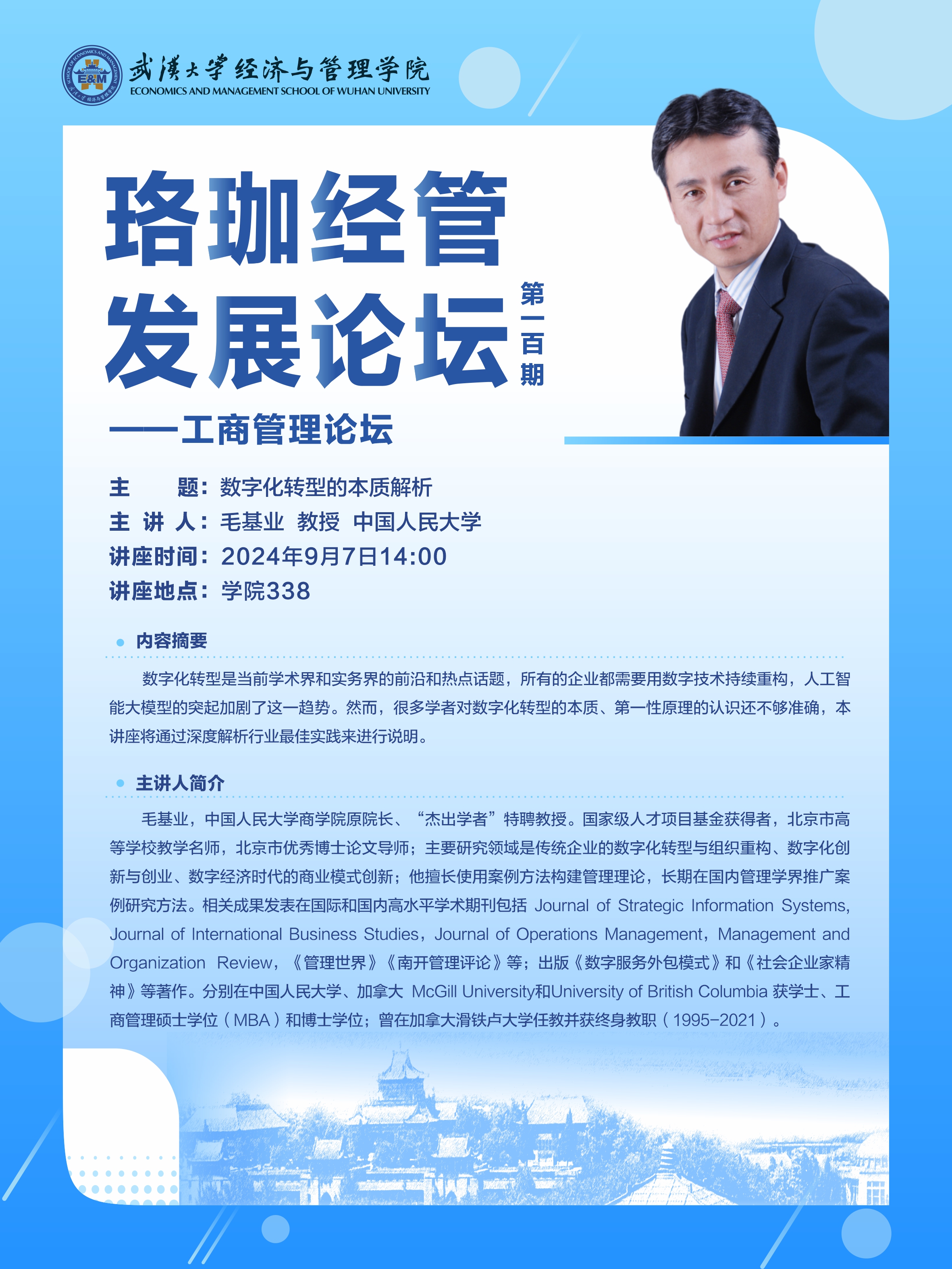 讲座预告 | 珞珈经管发展论坛第一百期——工商管理论坛