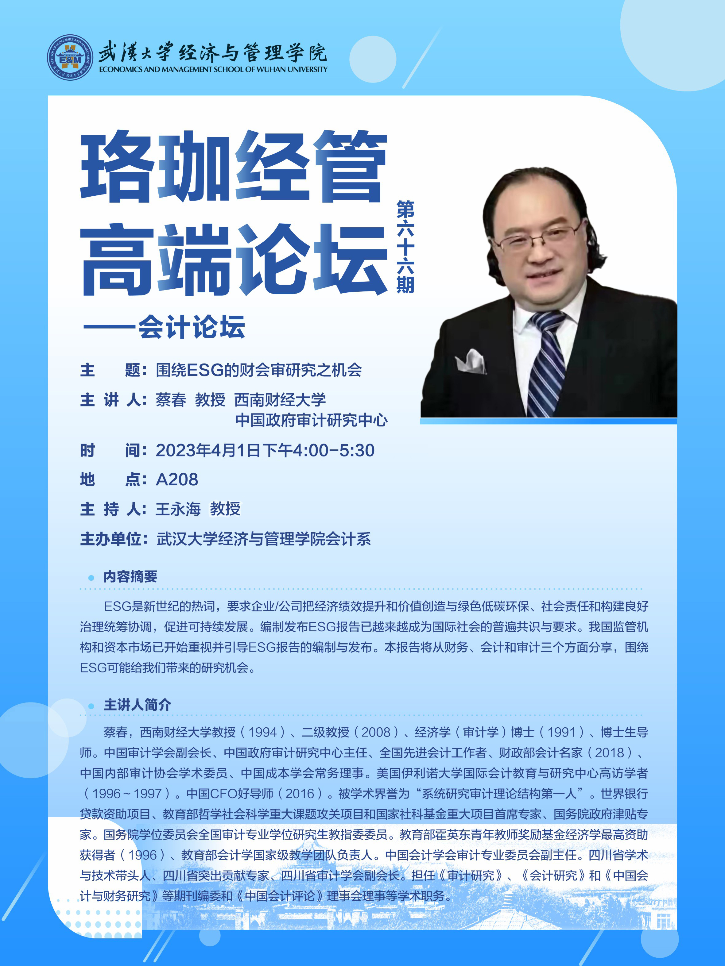 珞珈经管高端论坛第六十六期——会计论坛