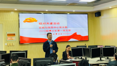为了深入学习贯彻落实习近平新时代中国特色社会主义思想,将高校立德树人的根本任务以春风化雨、润物无声的方式落地落实落细,建立多层次多渠道的交流平台,加强师生间的沟通联系,2020年10月27日下午,实验与信息中心党支部与2020级博士第1党支部在中心422实验室联合开展了“情系学生 • 服务育人”支部结对共建党日活动。活动由实验与信息中心党支部书记任竹芸老师主持,2020级博士生第1党支部书记刘燚爽同学协助。实验与信息中心党支部7名教职工党员和2020级博士第1党支部19名党员、预备党员及入党积极分子参加了本次活动。