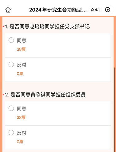 随后进行会议的第二项议程,进行正式的换届选举。支委候选人分别进行了竞选发言,逐一介绍了自己的工作经历、工作计划以及未来愿景。候选人发言结束后,党支部全体党员进行投票。根据投票结果,超过半数党员同志同意赵培培、黄欣祺、刘宸希、赵萱四位同志担任AV淘宝