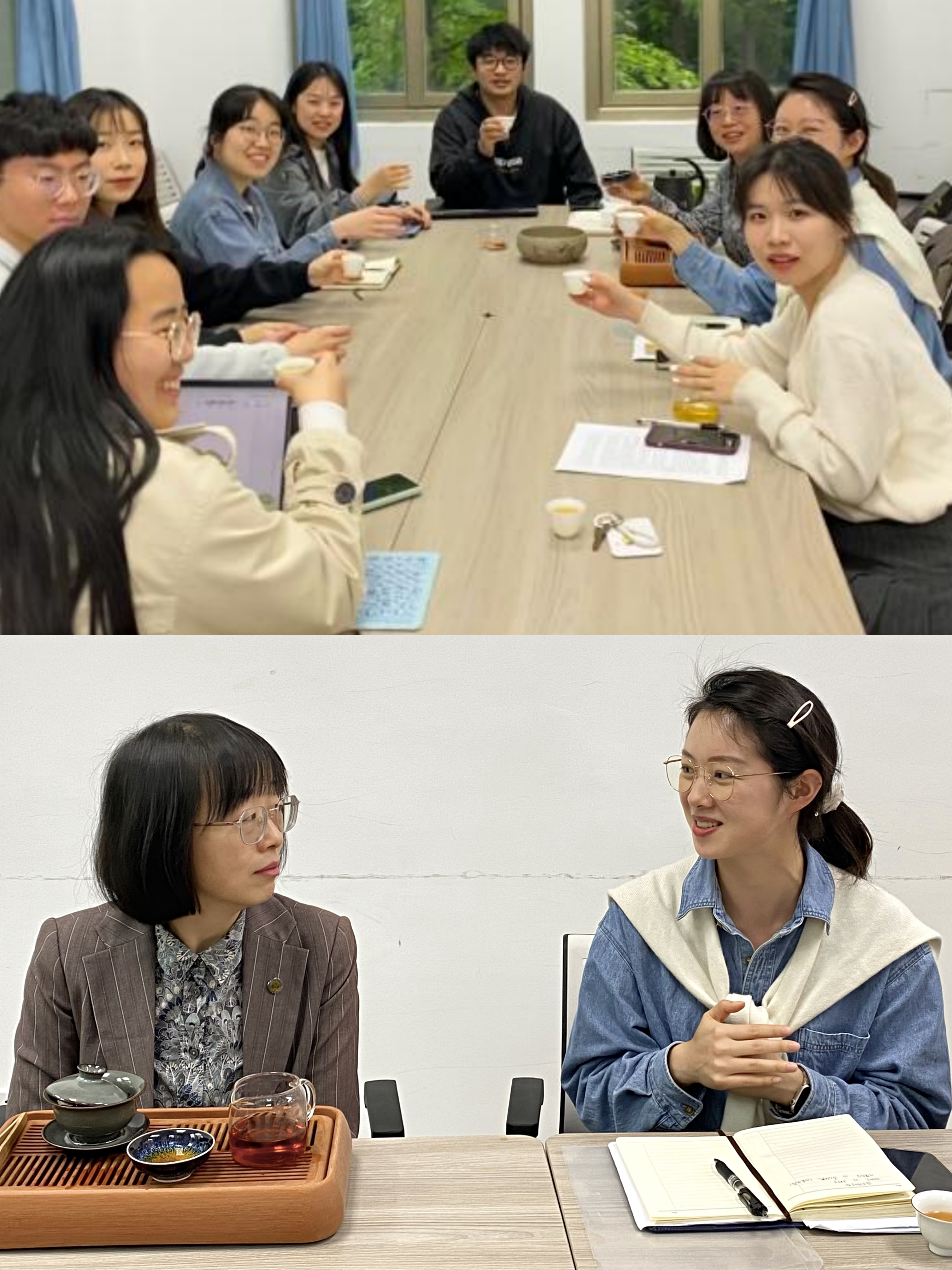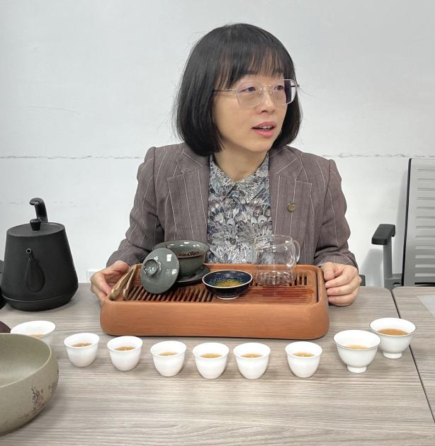 党委副书记谢雅维老师与学生代表们在氤氲茶香中进行亲切座谈交流,学院辅导员冯梦珂老师主持活动。