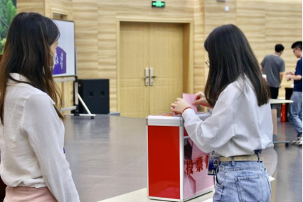 经过严格公正的计票,张一琪、林菁文、洪文凤3位同学当选为AV淘宝