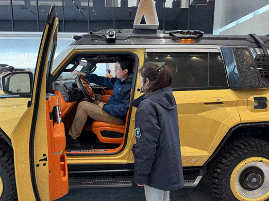 此次参访活动邀请到猛士科技人力资源部总监孟骋全程英文讲解。他从猛士公司的创立背景阐述了品牌如何从历史中汲取灵感,将中国文化元素融入豪华越野车的设计理念,致力于为客户打造独特的驾驶体验,成为 “豪华电动越野文化的引领者”。他详细介绍了东风猛士的多款车型,强调其在不同路况下的卓越表现,以及品牌在全球市场的定位与目标客户群体。
