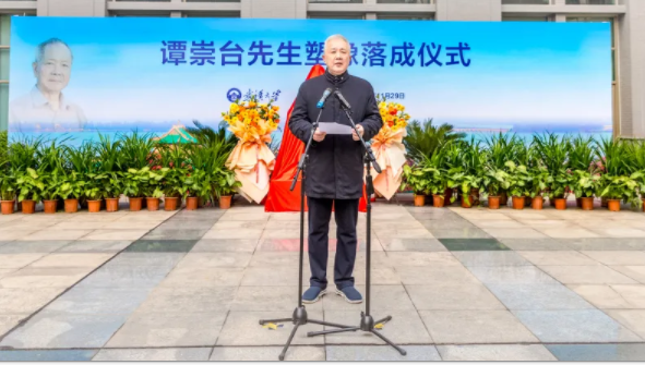 Professor Wen Jiandong from the School of Economics and Management briefly introduced the conception and creation process of Mr. Tan Chongtai's statue. He mentioned that the statue had been donated by Tan's disciples. The total amount donated by the students greatly exceeded the cost of designing and making the statue, and the remaining funds were transferred to the established Development Economics Scholarship of Professor Tan Chongtai. The statue declares that Mr. Tan would inspire his younger students to forge ahead academically, continue the glory of Wuhan University, and devote themselves to China's economic and social development and progress.