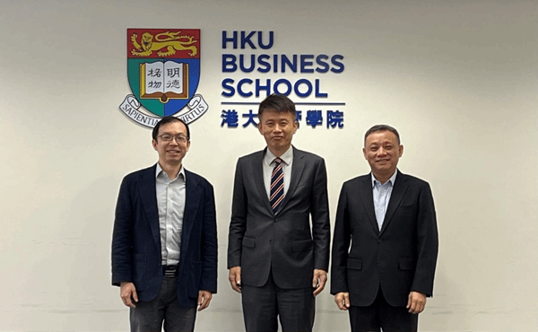 On January 12, 2024, thanks to the early promotion by Mao Zhenhua, the president of the Hong Kong Alumni Association of Wuhan University and an adjunct professor at the University of Hong Kong, Dean Nie Jun went to the University of Hong Kong (HKU)business school for in-depth cooperative exchanges with Dean Cai Hongbin. Alumni Mao Zhenhua was invited to the meeting.