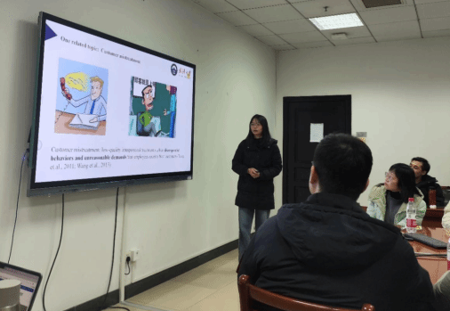 2021级人力资源管理专业博士研究生周妙娣以完整的论文框架详细地讲述了题为“Finding the silver lining: Emotion regulation perspective on customer mistreatment and employee performance”的文章。点评环节,点评人李绍龙副教授认为该篇文章的研究内容与工作值得肯定,但由于其认知上的负面性需要在投递期刊时作出适宜的选择,同时建议修改理论贡献中的写作逻辑,并在控制变量上控制控制既往研究中关注较多的影响因素,增强结论的可信度与说服力;王琦琦老师亦充分肯定了该篇文章研究问题的趣味性、逻辑的清晰、自评与他评数据的合理性,但认为研究问题与数据结果的阐释需要修改,并提供了两种能够使文章更自洽的思路以供借鉴。