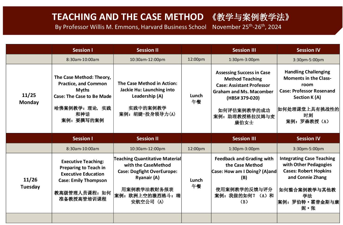 为进一步推动学院专业学位教学案例开发与案例教学实践工作,更好地发挥案例教学在专业学位研究生培养中的作用。现决定组织选派骨干教师参加哈佛商学院“教学与案例教学法”(TEACHING AND THE CASE METHOD)培训项目,具体通知如下: