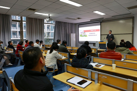 杜晓成以“按中国特色世界水平标准,奋力建设新时代的新经管”为题讲授党课。他紧紧围绕党的十八大以来习近平总书记关于教育的重要论述,从习近平教育论述、学院建设标准、守正创新三个方面,结合学院发展现状深刻解读新时代中国特色世界水平的学院建设。他强调,习近平总书记关于教育的重要论述对于新时代新经管的建设发展具有十分重要的指导意义,有必要深入学习、研究和探讨。要依托学科评估落实立德树人根本任务,坚持以立促破,破立结合,做到“破五唯”。在国际认证方面,提倡用新理念、新做法,进一步明晰学院的使命,形成一个以学院使命战略为核心、以人才培养目标为导向、以考核评估数据为基准的动态闭环培养体系。