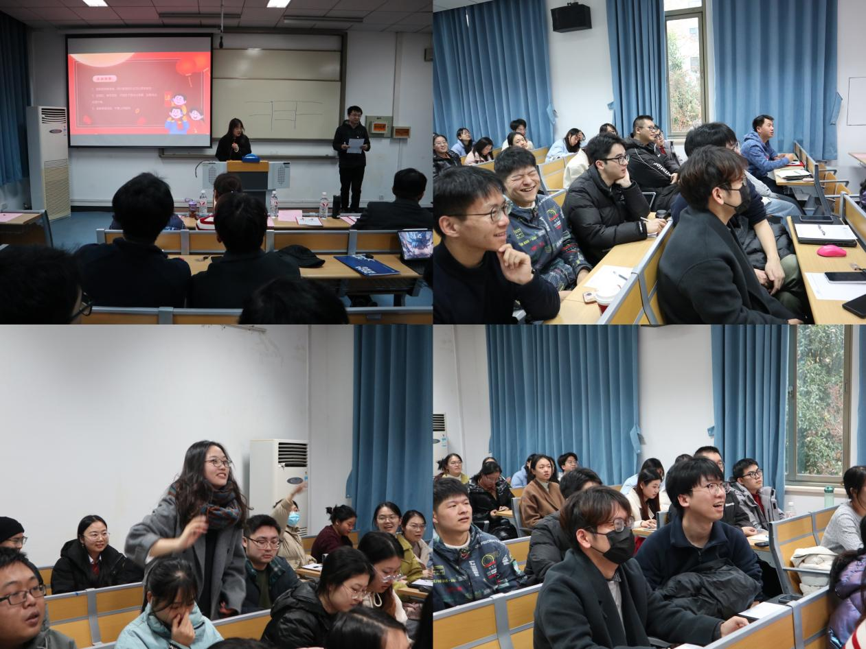 在经验分享后,活动进入年终总结与展望环节。应用经济学硕士第三党支部书记伍梦圆、应用经济学硕士第四党支部书记钟林峰依次对过去一年支部工作进行汇报,明确取得的成绩与改进方向。