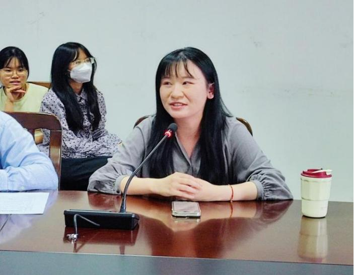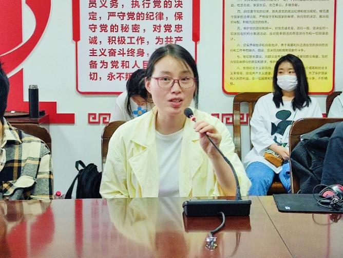 在场同学结合个人经历,从学习、生活和社会实践等,探讨了青年学子落实中央八项规定精神的行动路径。张子璇同学从日常生活的细微之处着手,倡导同学们在日常生活中要积极实践“光盘行动”、节约用水用电等行动。商俊杰同学结合自己的科研经历,强调在科研工作中应坚决摒弃追求短期利益的功利心态,注重问题导向和挖掘研究深度,以严谨认真的态度对待每一次实验和汇报工作。毛子怡同学则进一步指出青年学子在社会实践中应保持务实的工作作风,避免“走过场”,应通过实地调研、资源整合和持续跟进,为服务对象提供切实的帮助。