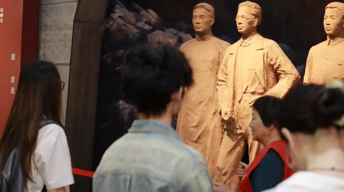 跟随工作人员的步伐,众人来到资产阶级民主革命时期的展区。讲解员清晰、具有穿透力的声音让我们看到孙中山、秋瑾等革命先行者探寻救亡图存之路的艰辛,黑暗之中仍旧有人在为光明锲而不舍地努力。