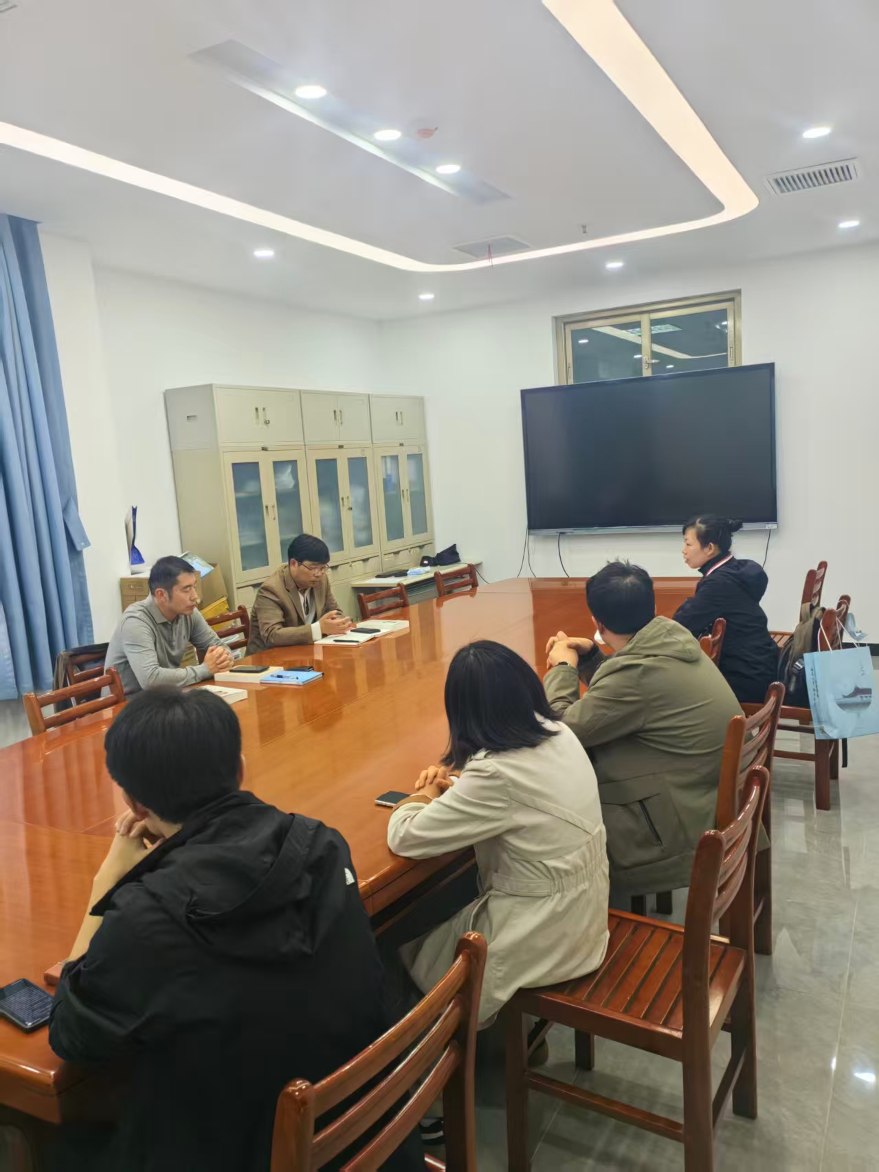 2025年10月30日下午,学院第四教师党支部在保险系会议室开展主题党日活动,围绕“中国共产党与中华民族伟大复兴”主题学习内容进行集中研讨。活动由支部书记潘国臣主持,联系院领导纪委书记谭小林出席,支部党员教师积极参与并踊跃发言。