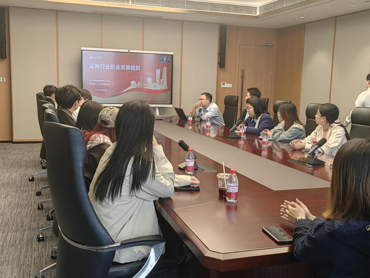 在线下参访环节,在聂禾老师的带领下,全体同学赴长江证券进行参观学习。通过深入金融一线锤炼党性,零距离感受在党的领导下现代金融企业的发展风貌与核心优势。参观过程中,研究生支部与企业支部联学联建,同学们实地走访了公司现代化办公区、员工健身空间等场所,切身感受到企业以人为本的发展理念和充满活力的工作氛围。通过深入了解公司发展历程和业务布局,大家深刻认识到长江证券作为行业领军企业,在投资银行、财富管理等领域展现出的专业实力,特别是在绿色金融、数字化转型等方面的创新实践,生动展现了新时代金融企业服务实体经济的前沿探索。这次实地教学让同志们深切体会到,坚持党的领导是金融业健康发展的根本保证。