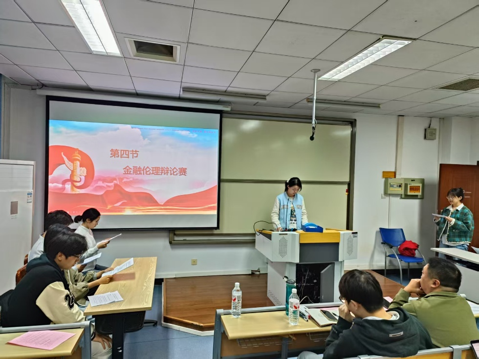 为促进理论与实践的深度融合,同学们开展了金融伦理主题辩论赛,辩论深刻揭示了金融实践中伦理抉择的复杂性,启迪同学们新时代金融人不应简单二选一,而要在服务国家金融稳定发展大局中寻求最优解。