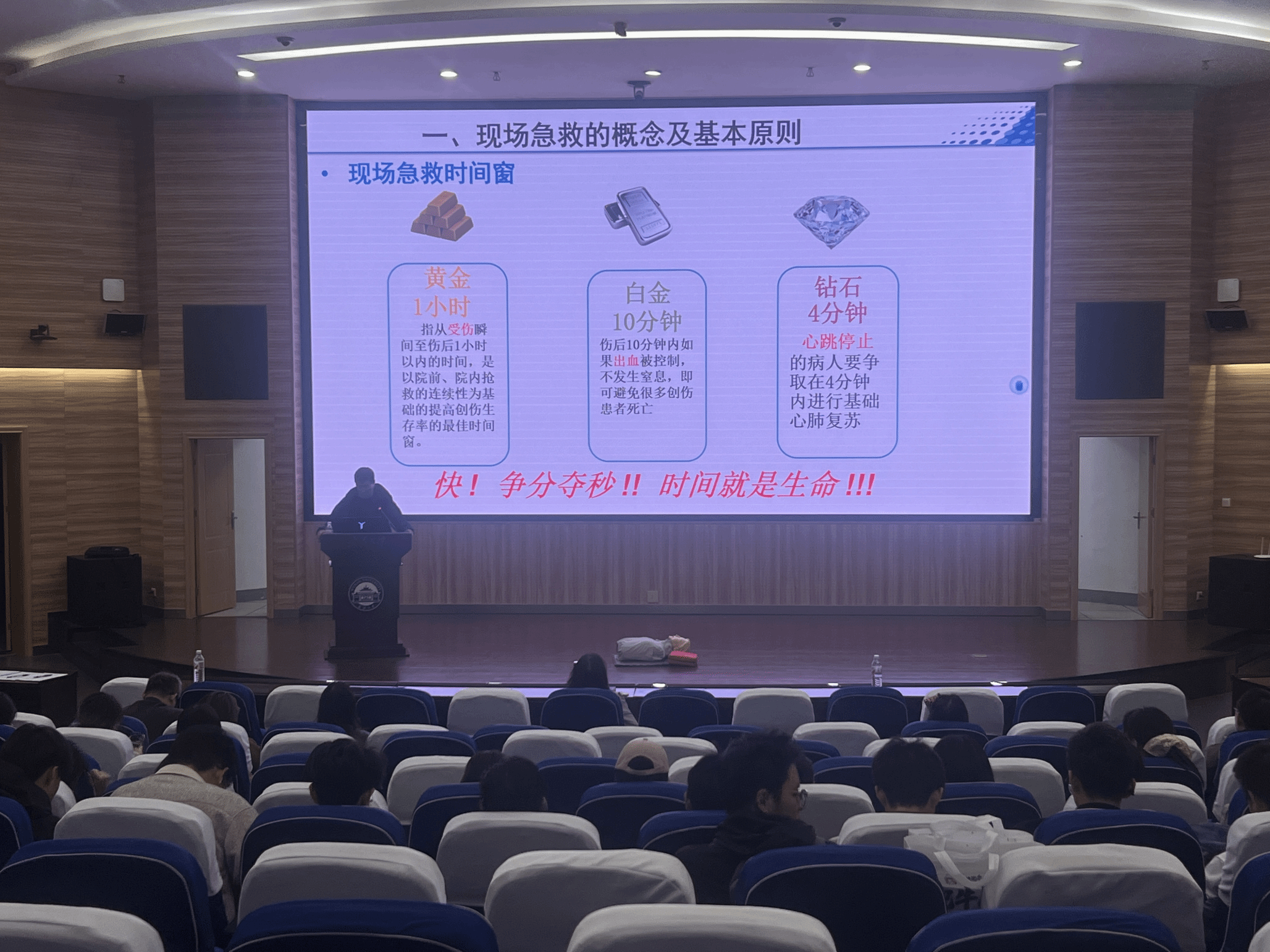 在景林报告厅举办校园安全急救知识讲座。活动由实验与信息中心联合党政办公室共同组织,学院师生代表及相关部门工作人员共六十余人参加。