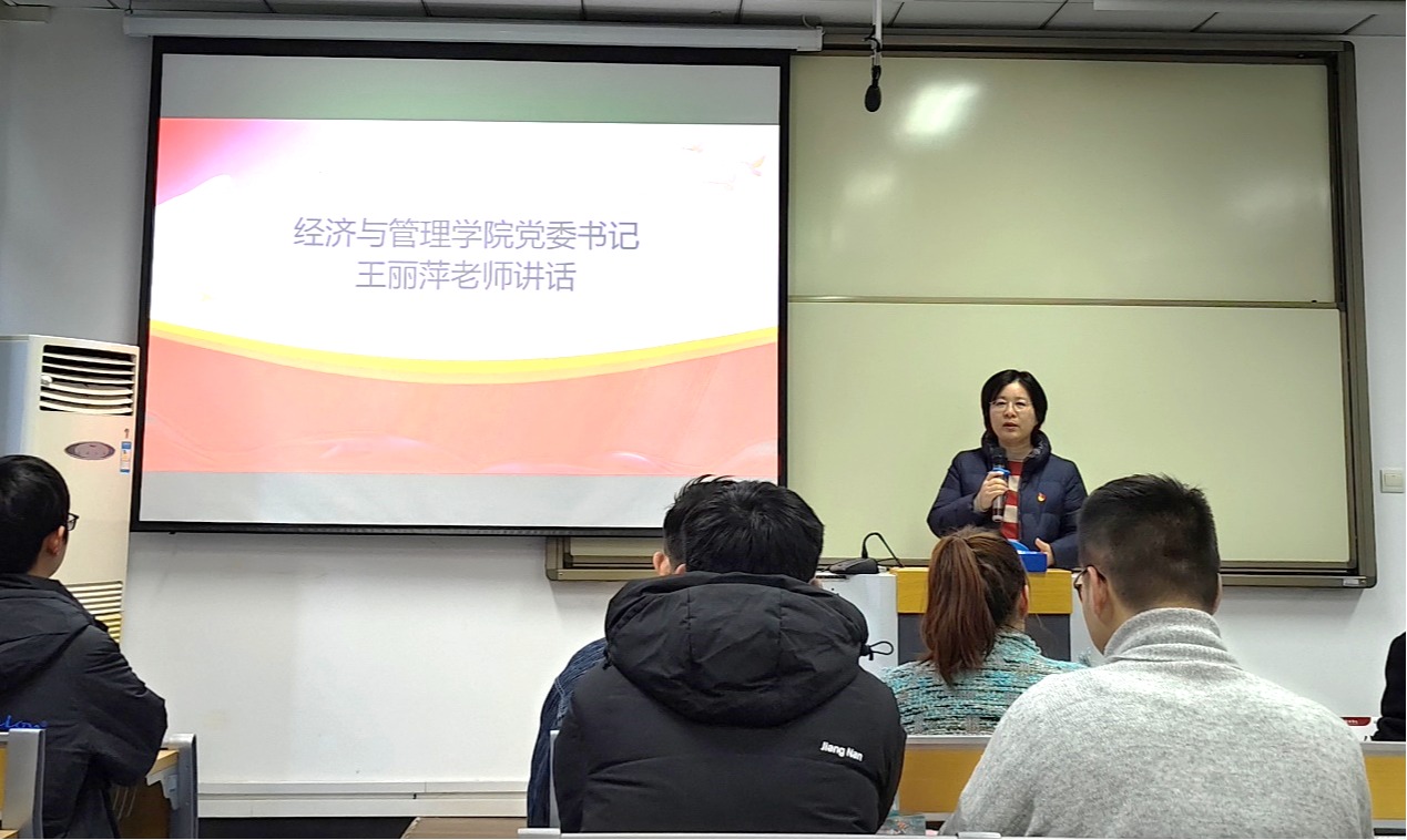 2024年12月13日,学院党委书记王丽萍前往研究生党支部联系点——学院应用经济学硕士第一党支部、应用经济学硕士第二党支部,与研究生党员一起进行了12月份“凝心聚力谱新篇,奋楫扬帆启新程”主题党日学习,并以微党课的形式对研究生党支部组织活动、开展工作等进行指导,推动解决金融学科研究生成长成才中存在的实际问题。主题党日活动在学院119教室举办,由应用经济学硕士第一党支部的支部书记严瑞松同志主持。