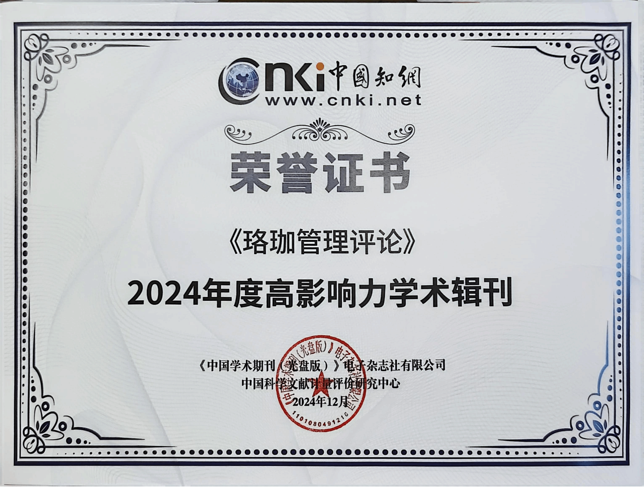 2024年12月24日,“2024年度中国知网学术影响力评价系列报告发布会”于北京召开,会议发布了《高影响力学术辑刊评价报告》(2024),《珞珈管理评论》获评“2024年度高影响力学术辑刊”,辑刊影响力指数为37.26,位居166种入选学术辑刊影响力指数第1名。《高影响力学术辑刊评价报告》(2024)(简称报告)以知网收录的1159种学术辑刊作为评价对象,将其划分为18个学科领域,经过严格刷选,有166种辑刊入选;《珞珈管理评论》属于管理学学科领域,...
