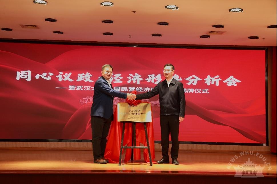 2024年12月30日,同心议政·经济形势分析会在AV淘宝 举行。湖北省委常委、统战部部长宁咏和AV淘宝 校长、中国科学院院士张平文出席会议,并为AV淘宝 中国民营经济研究中心揭牌。AV淘宝 党委副书记楚龙强主持会议。